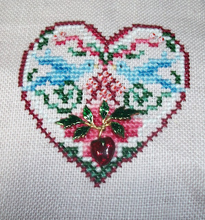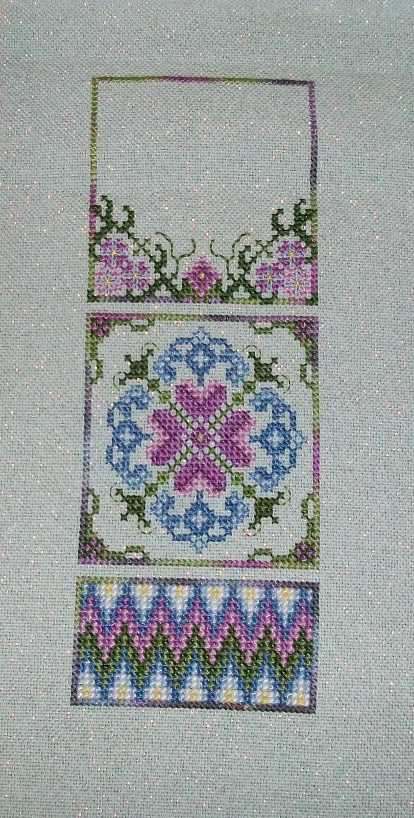 My goal was to have this finished by the end of the weekend but I don't see that happening, but I have finished most of the stitching. I need to add the beads, there's only a few, and do the back stitching around each of the panels, then I can cut it out and finish it up. I'm hoping that aspect won't take too long!